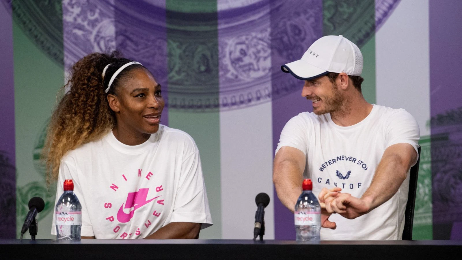 Murray and Williams played mixed doubles together at the All England Club in 2019, while the American also referenced Murray's famously grumpy on-court demeanour.
