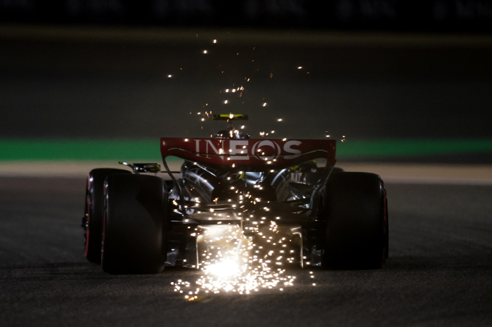 Mercedes' Lewis Hamilton during qualifying day of the Bahrain Grand Prix at the Bahrain International Circuit - March 2023