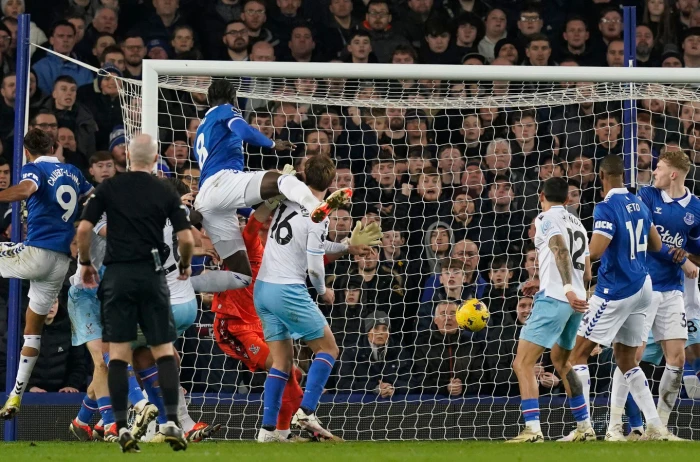 Everton's Amadou Onana soared above Crystal Palace's defence late in the second half to earn a 1-1 draw at Goodison Park in Monday night's Premier League action.